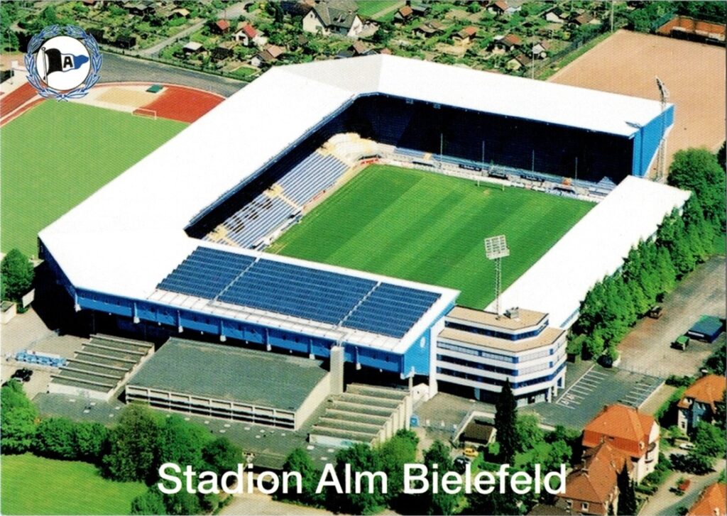 SchücoArena to obiekt klubowy Arminii Belefeld o pojemności 27 300 widzów, który powstał w 1957 roku. Szybki rozwój infrastruktury stadionowej miał miejsce na początku lat 70-tych, po awansie klubu do piłkarskiej ekstraklasy. Ze względu na wady konstrukcyjne i konieczność czasowego ograniczenia pojemności stadionu, obiekt przeszedł trzykrotne prace modernizacyjne. Stadion zwany niegdyś Alm przyjął swoją obecną nazwę od sponsorującej obiekt firmy Schüco, producenta stolarki drzwiowej i okiennej.