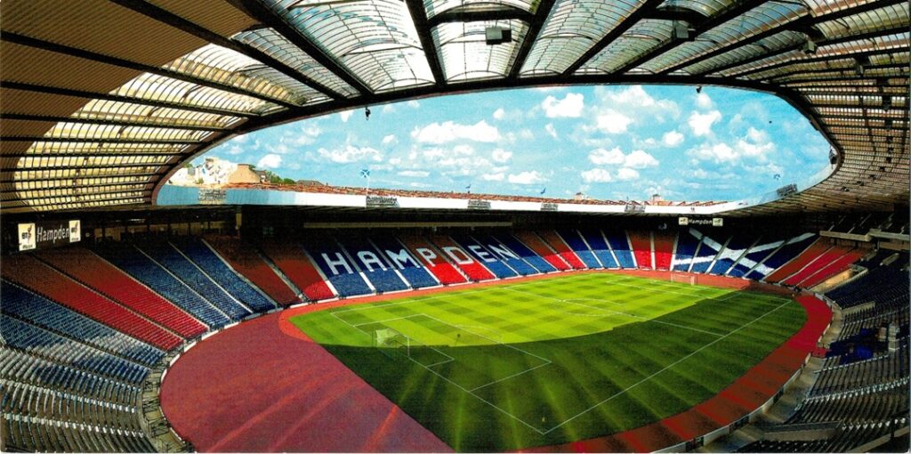 Hampden Park to obiekt będący narodowym stadionem piłkarskim Szkocji i siedzibą pierwotnych właścicieli – Queen’s Park Football Club. Został otwarty w 1903 roku, a jego pojemność przekroczyła 100 000 miejsc. W latach 1927–1937 liczba ta wzrosła do 150 000. Na tym stadionie odnotowano w 1937 roku frekwencję wynoszącą 149 415 widzów, co jest do dziś europejskim rekordem międzynarodowego meczu piłkarskiego (mecz przeciwko Anglii). Zaostrzone przepisy bezpieczeństwa spowodowały, że pojemność została zmniejszona do 81 000 miejsc w 1977 roku. Z czasem stadion został gruntownie odnowiony, a ostatnie znaczące prace zakończono w 1999 roku. Kolejną modernizację Hampden Park przeszedł przed Igrzyskami Wspólnoty Narodów w 2014 roku, podczas której dodano bieżnię i inne elementy niezbędne do organizacji igrzysk.